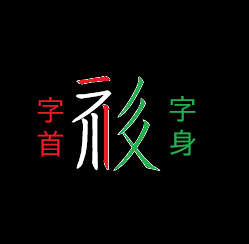 - 最初の部分を「字首」、残りの部分を「字身」と呼びます。